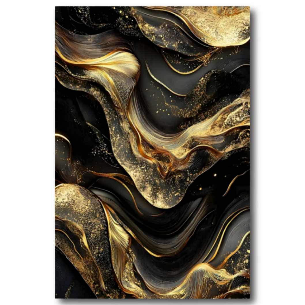 Tableau Absrait Marbre Or et Noir